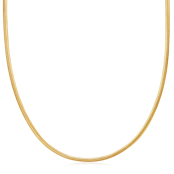 A snake chain has that rare ability to feel both modern and timeless. Whether you style it with a crisp white blouse for effortless polish or pair it with other gold chains for a bold, stacked look, this piece brings a refined edge to any outfit.