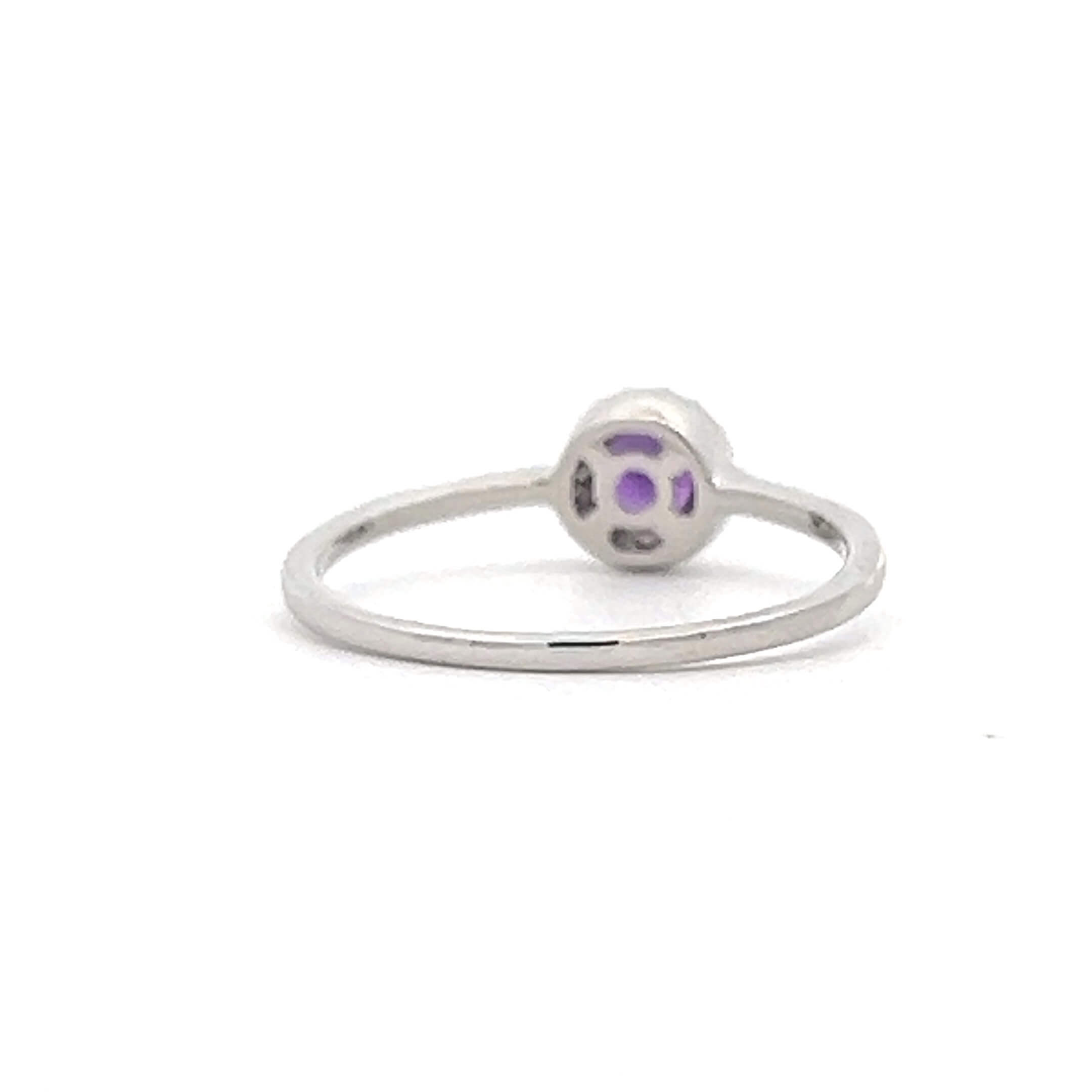 14K White Gold 0.37ctw Amethyst & Diamond Halo Ring – Finger Size 7 – GOR0169WAM
