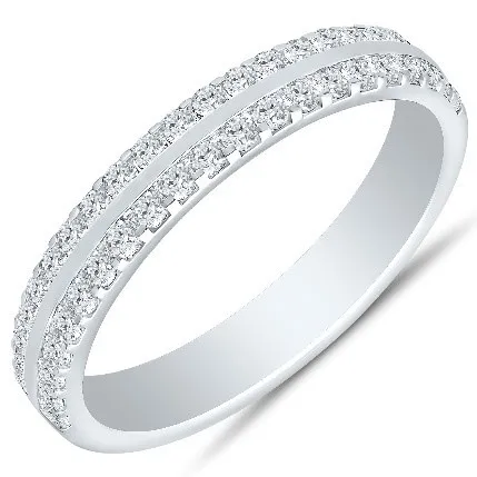 This double-row diamond band is perfect as a wedding or anniversary ring, embodying a timeless elegance that symbolizes enduring love. It can also be worn as a statement piece on any occasion, adding a touch of sophistication to your style. Its classic design ensures it will remain a cherished part of your jewelry collection.