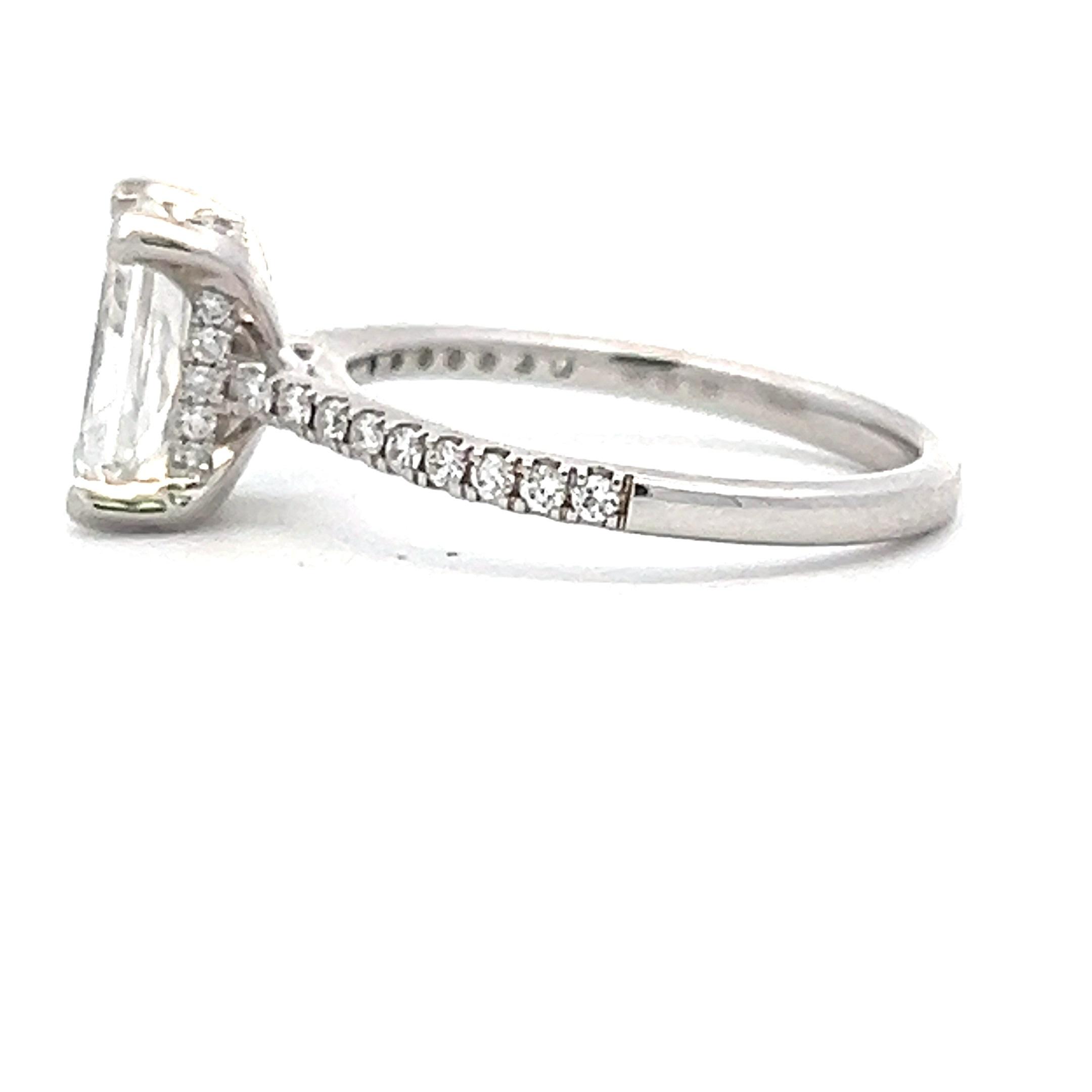 One (1) 14 karat white gold lab-grown diamond bridal ring set containing one (1) engagement ring featuring a lab-grown center radiant-cut diamond weighing 2.01 carats being of G color grade and of VS1 clarity grade according to an IGI report. The lab grown diamond is laser inscribed with an IGI ID number and measures 9.00mm X 6.09mm X 4.20mm.The ring also features a total of thirty-six (36) lab-grown round brilliant-cut accent diamonds weighing approximately 0.25 carat being of the G-H color grade range and of VS1 clarity grade set in a hidden halo around the center diamond,and down the shank of the engagement ring, The ring is stamped “14K UD LGD” and is a finger size 7