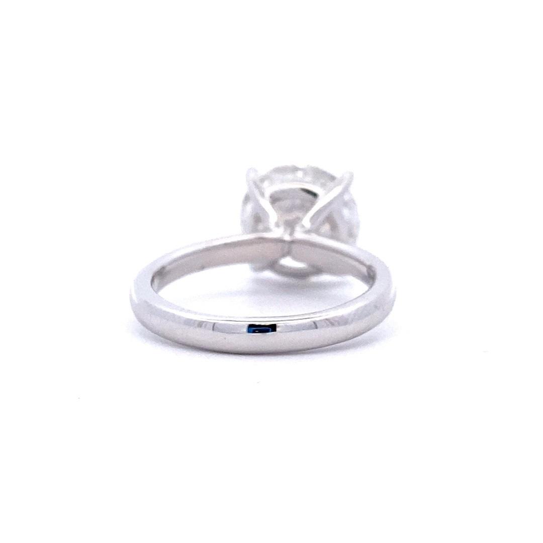 One (1) 14 karat white gold diamond solitaire engagement ring containing one (1) lab-grown round brilliant-cut diamond weighing 5.01 carats being of G color grade and VS clarity grade in a four (4) prong setting. The ring is a finger size 7.