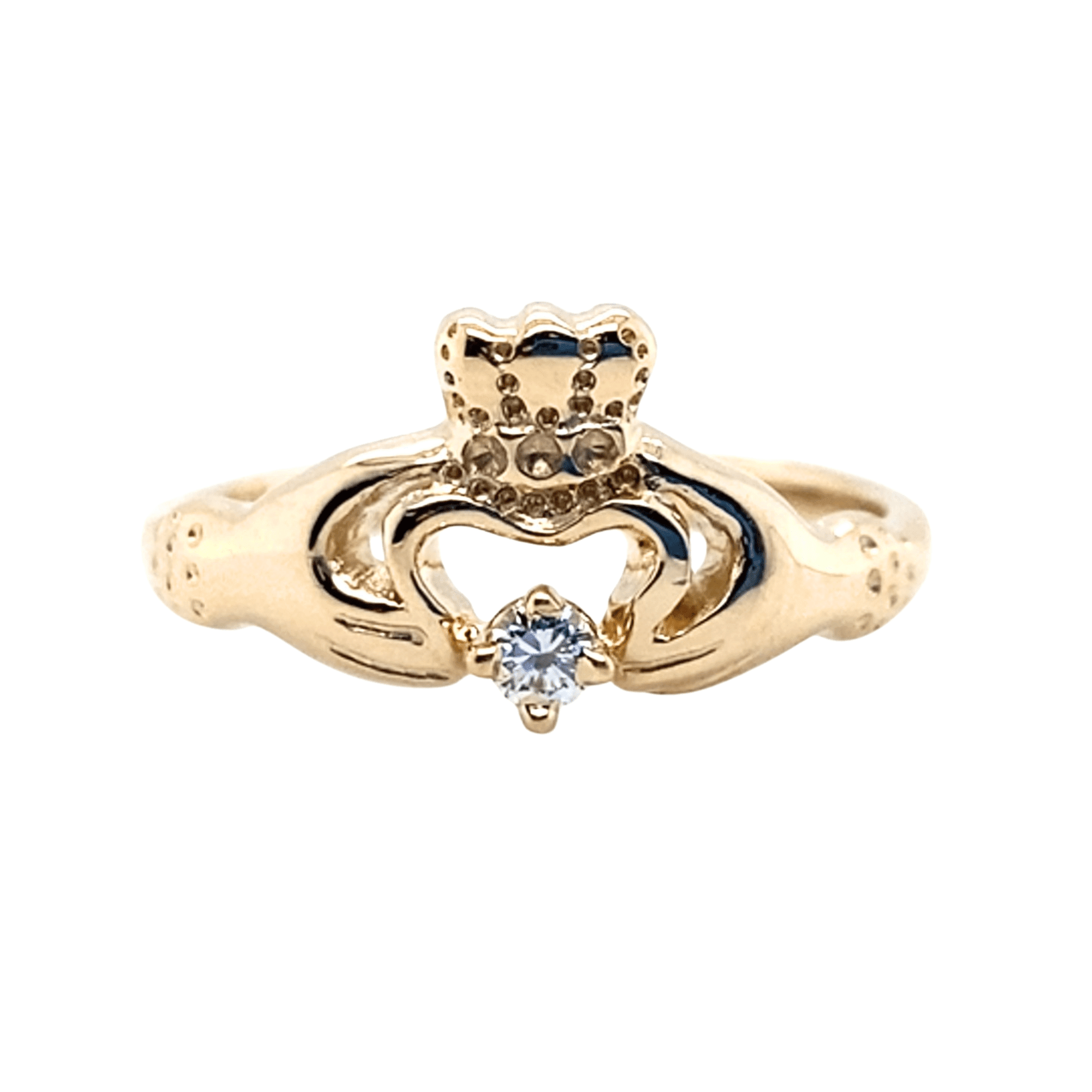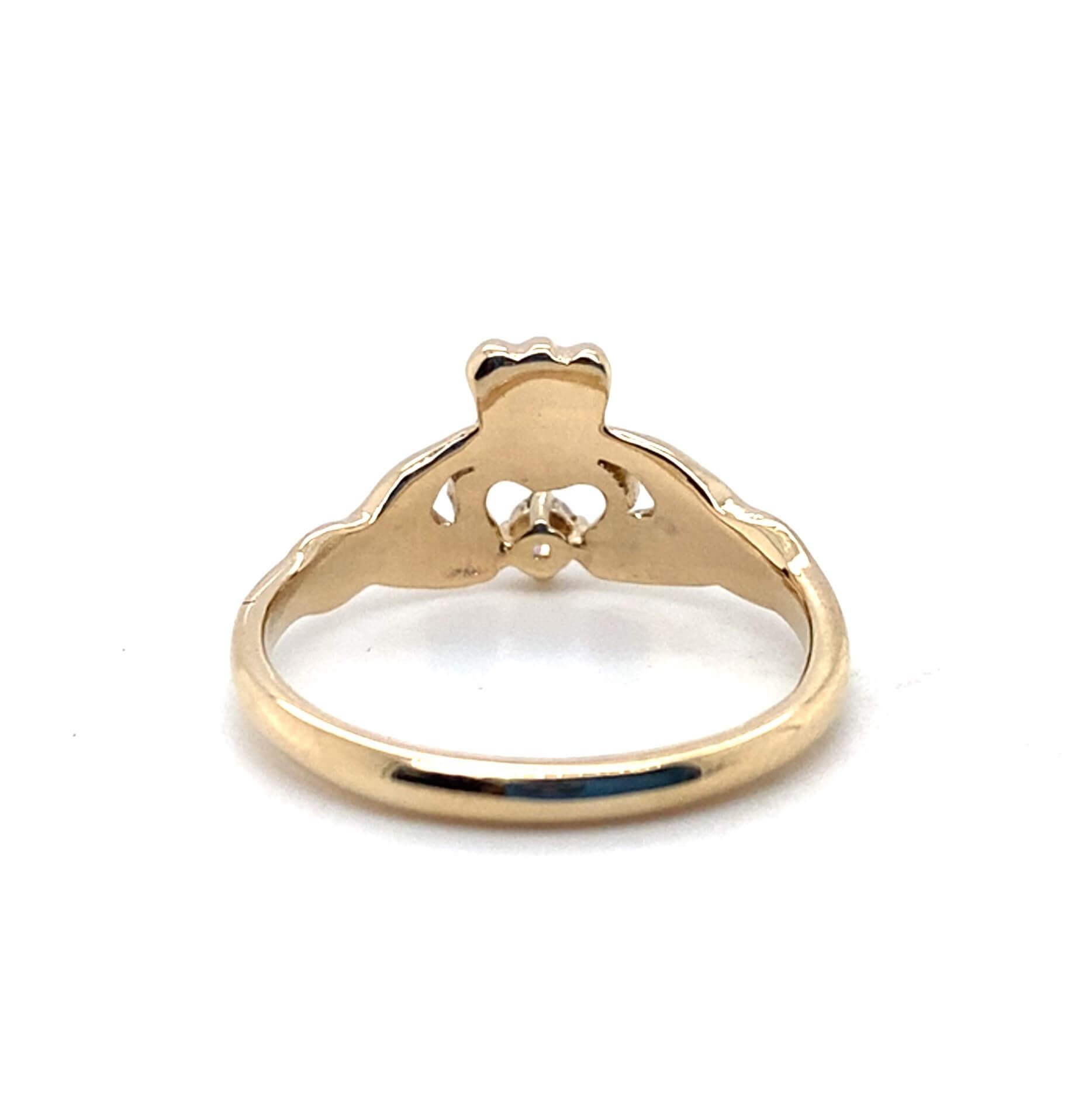 14K Yellow Gold 0.06ctw Diamond Claddagh Ring