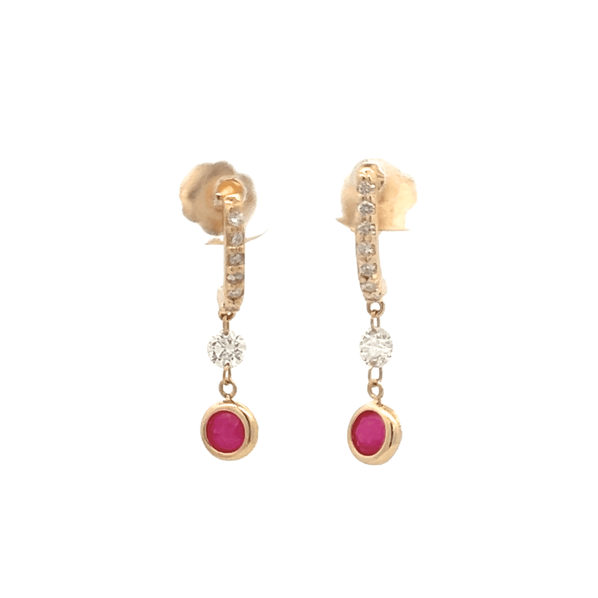 14K Yellow Gold 0.85ctw Ruby & Diamond Drop Earrings by Brevani