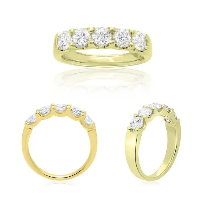 14K Yellow Gold 1 Carat Five Stone Diamond Wedding Band