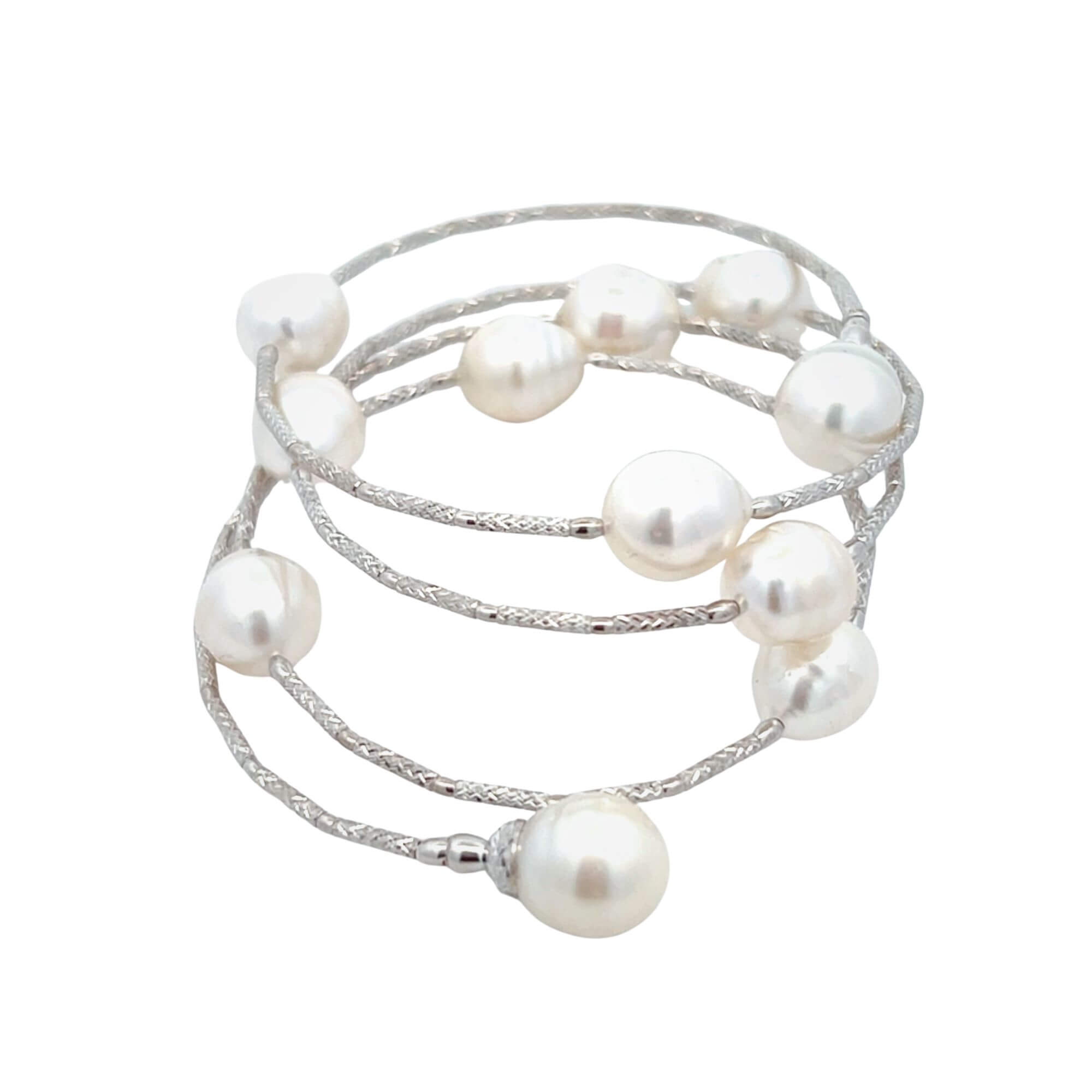 18K White Gold 8MM Freshwater Pearl Flex Wrap Bracelet
