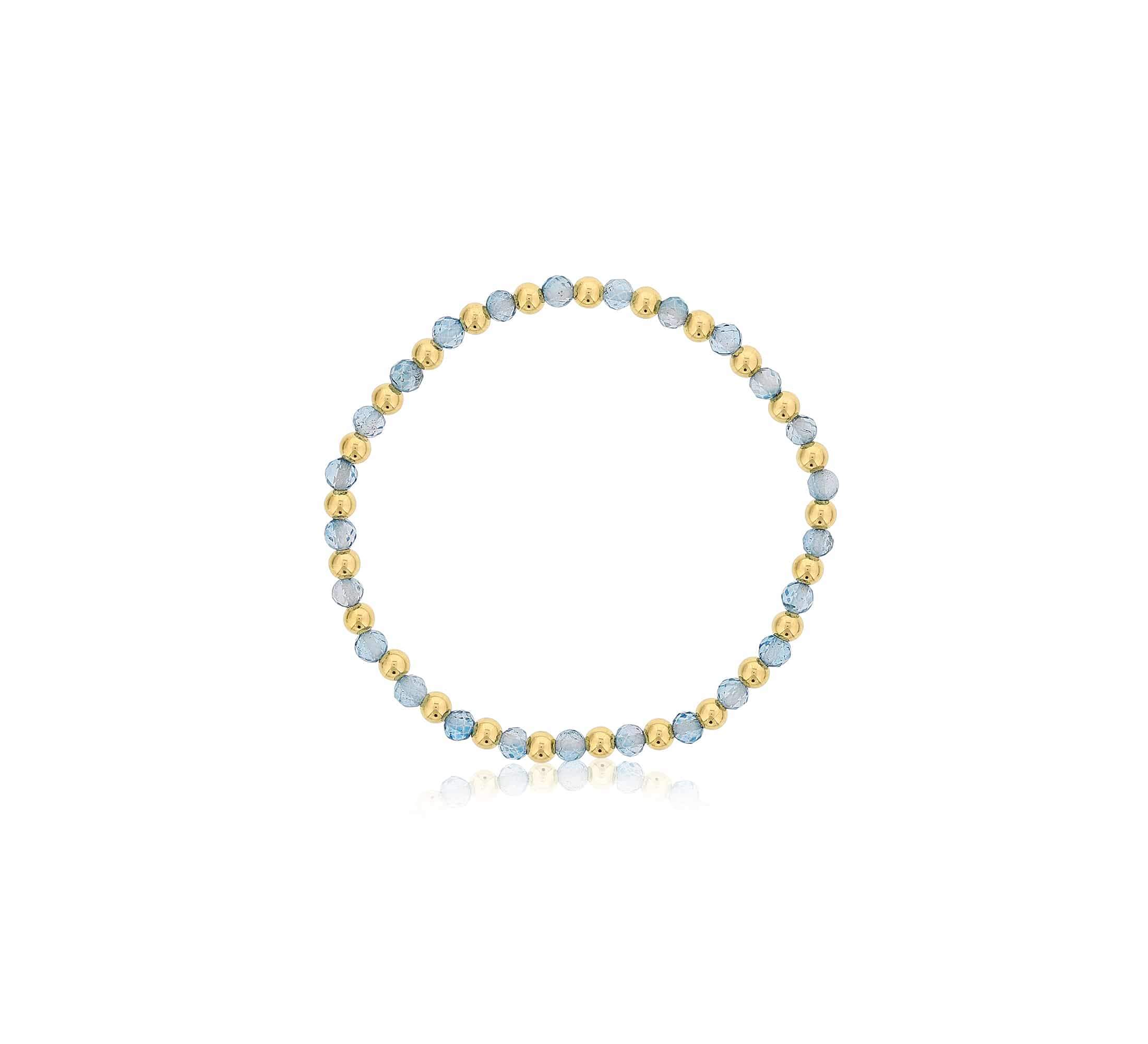This bracelet features alternating 4mm natural blue topaz beads and polished gold-filled beads arranged in a clean, evenly spaced pattern. The blue topaz displays soft, airy blue tones that create a light, balanced look while maintaining a refined profile. Finished with a stretch construction, the bracelet offers an easy slip-on fit designed for comfortable, everyday wear.