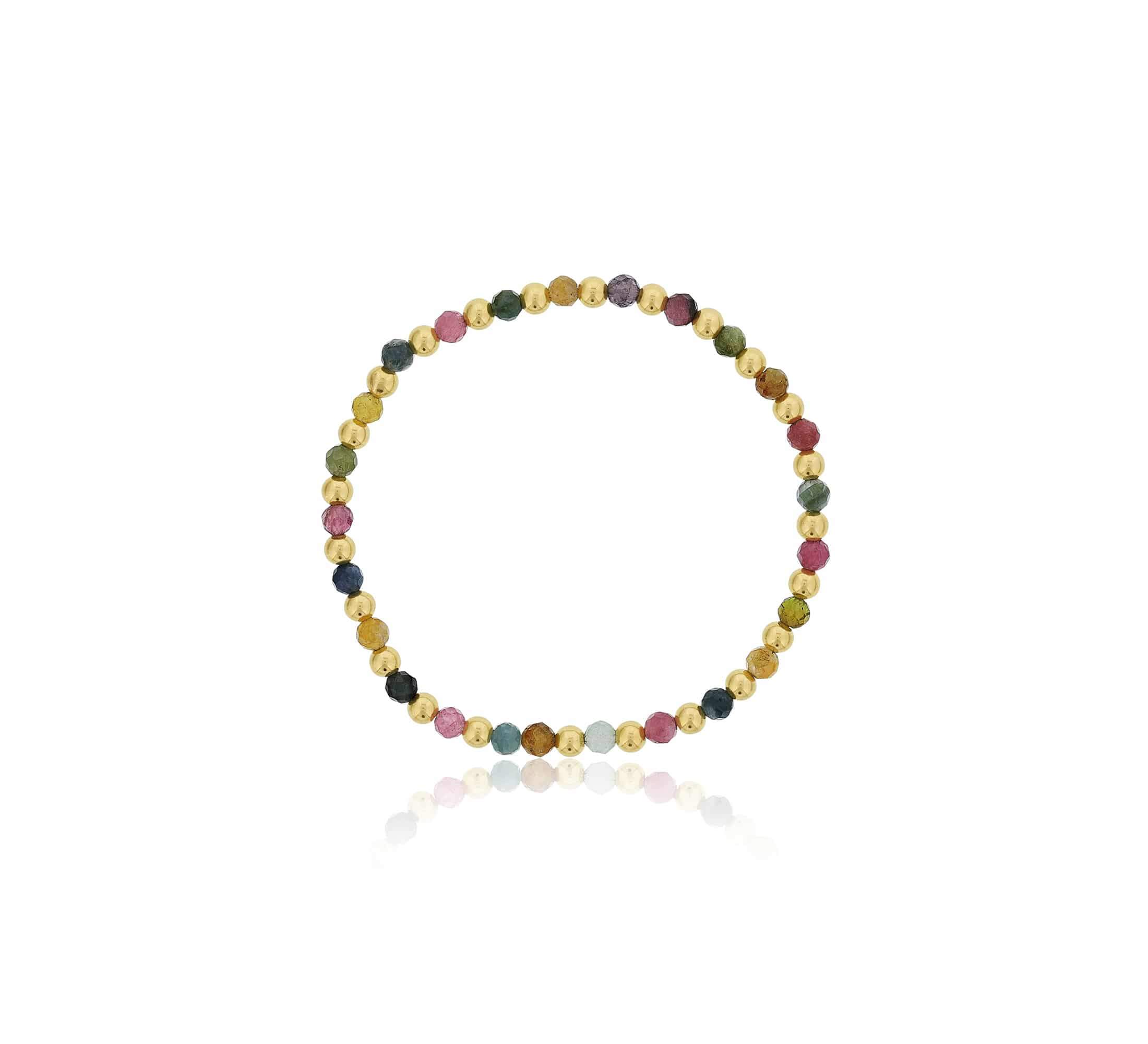 This bracelet is composed of alternating 4mm natural tourmaline beads and polished gold-filled beads, creating a balanced pattern that highlights the gemstone’s natural range of color. The tourmaline beads display subtle variations in tone, offering visual interest while maintaining a refined, cohesive look. Finished with a stretch construction, the bracelet provides an easy, comfortable fit designed for everyday wear.