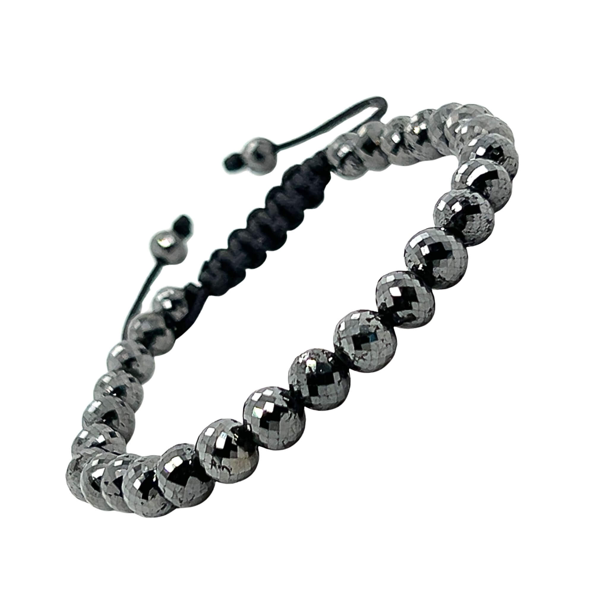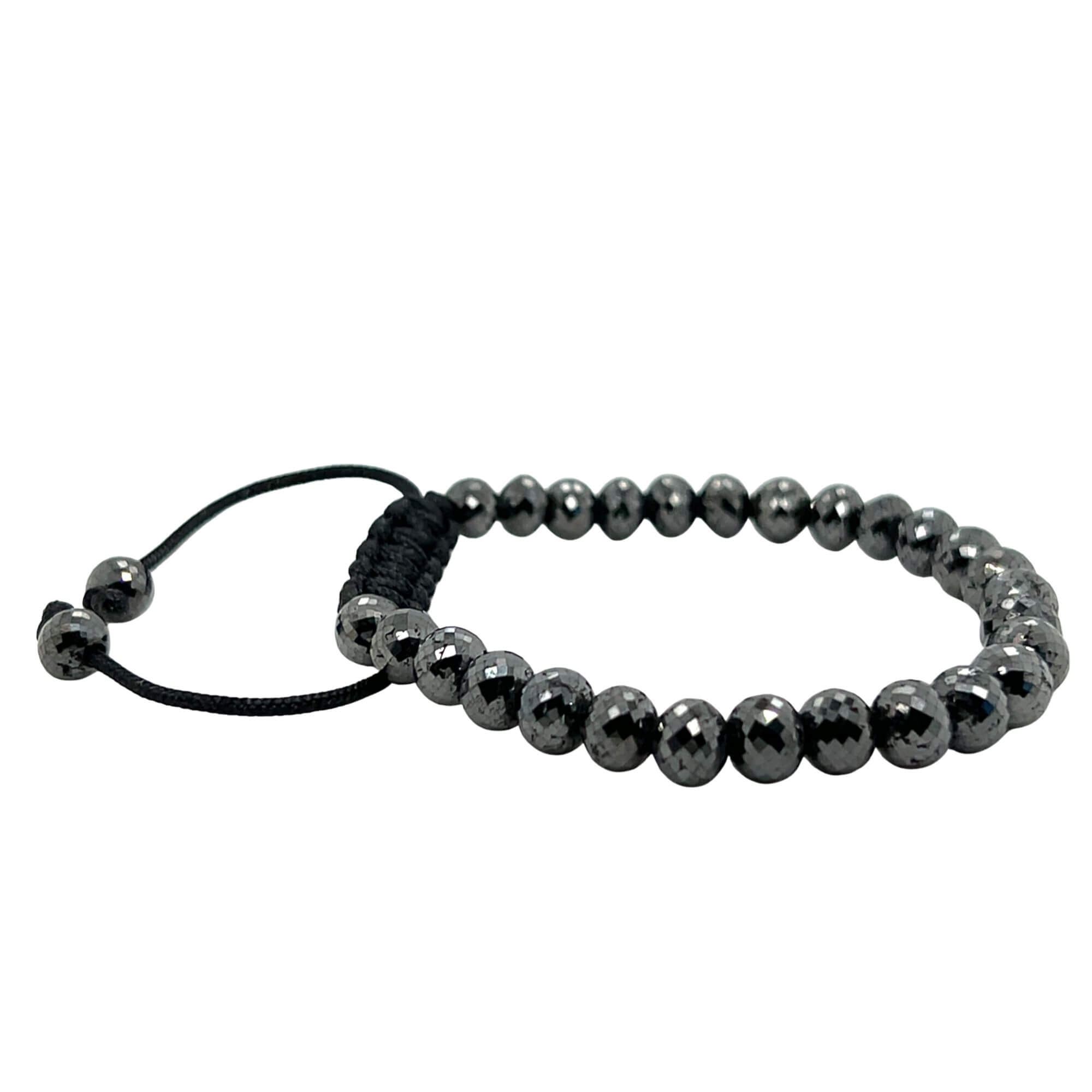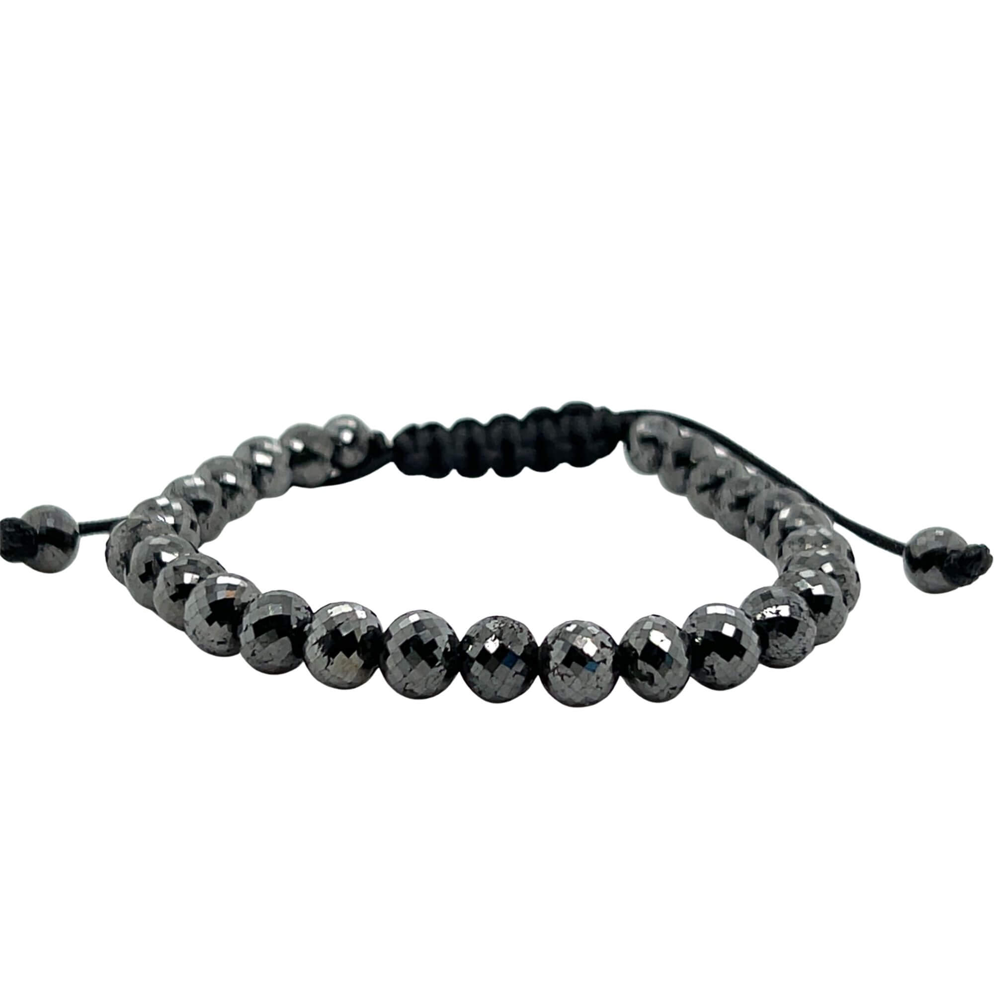 This black cord bolo bracelet features a strand of faceted black diamond beads totaling 62.30 carats, creating a bold, high-contrast look with subtle shimmer. The adjustable bolo closure allows for a customizable fit, while the polished diamond beads catch the light with a refined, understated edge. Designed with flexibility and ease in mind, this bracelet offers a modern alternative to traditional diamond styles.