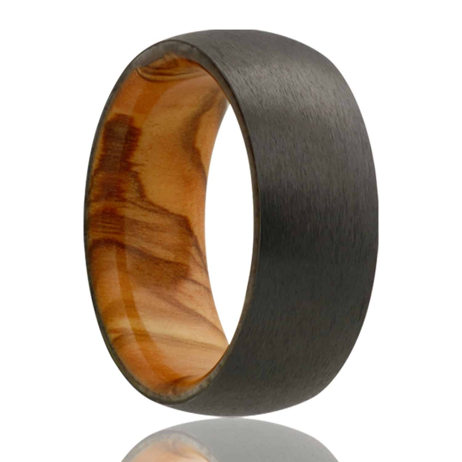 Black Zirconium Comfort Fit Band with Olive Wood Interior Sleeve