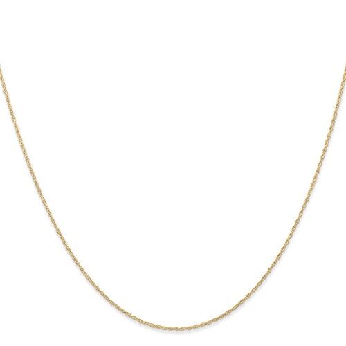 The Carded Light Cable Rope Chain Necklace in 14 karat gold measures 0.60mm in width and 18″ in length with a polished finish and a spring ring clasp.