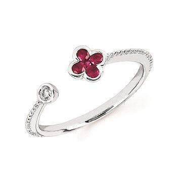 Clover Ring with Rubies and Diamond in White Gold