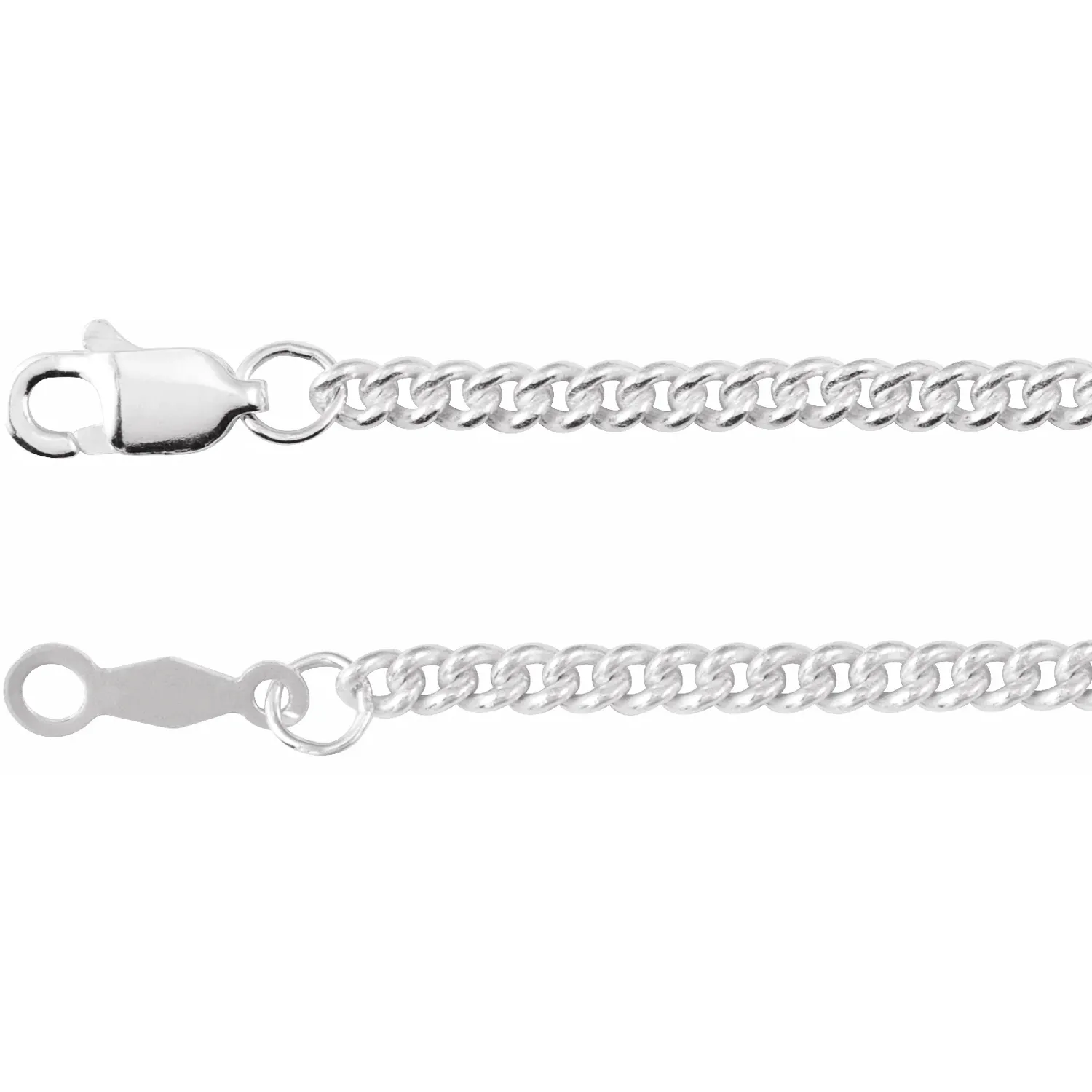 The Curb Chain Necklace is crafted from sterling silver with a polished finish and features solid links measuring 2.25mm wide with a total necklace length of 24″. The necklace is secured with a lobster claw clasp and has a total weight of 9.21 grams.