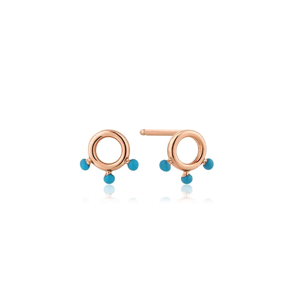 Unique and Chic. These dainty rose-colored studs feature open circles adorned with blue enamel balls. Add some color to your wardrobe with these fabulous earrings.