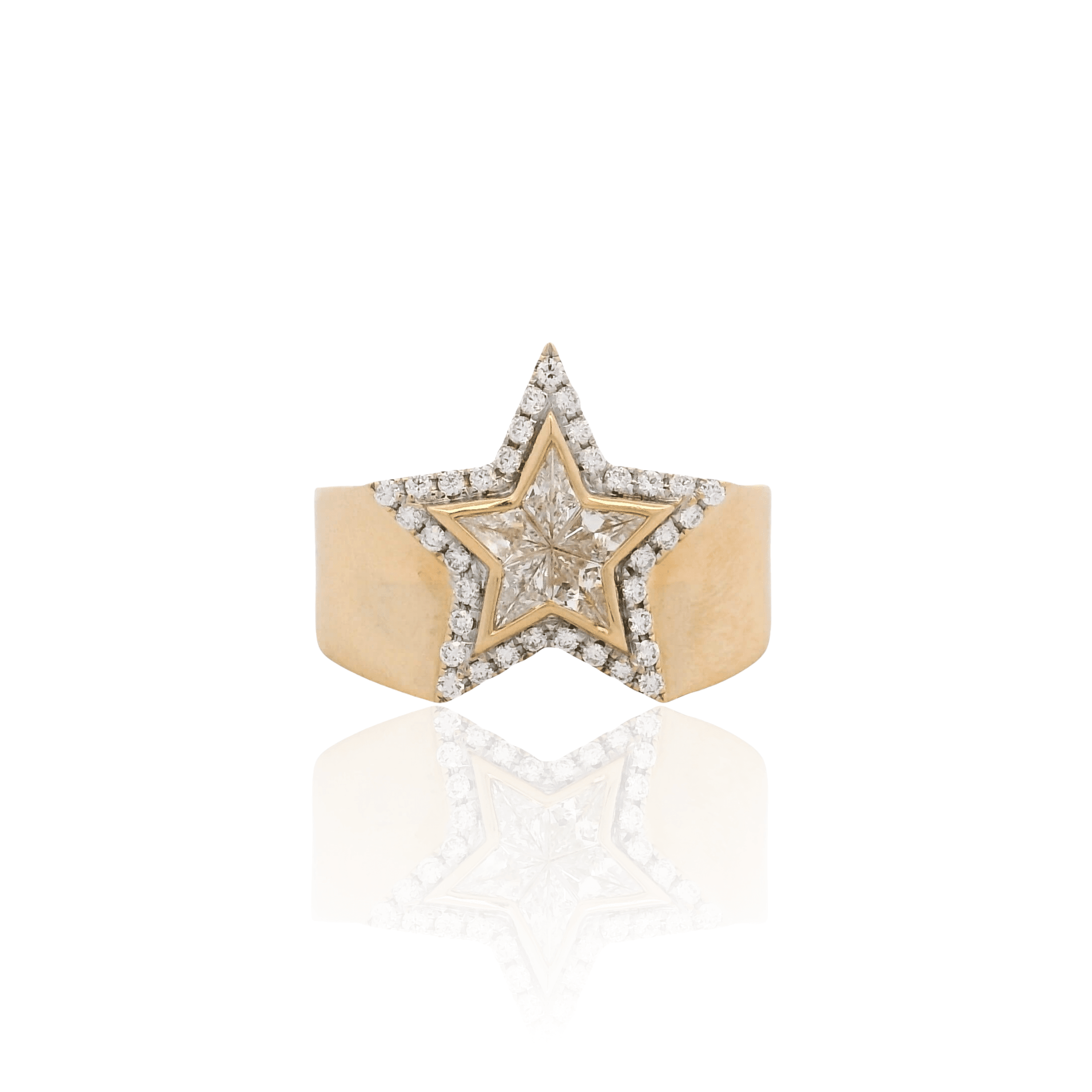 Confident and unapologetically bold, this ring is meant to be noticed. Wear it as a standalone statement with simple outfits to let the star design take center stage, or pair it with clean gold bands to complement its warmth without competing. It’s the kind of piece that feels powerful, a little glamorous, and entirely intentional—perfect for someone who prefers their jewelry with personality and presence.