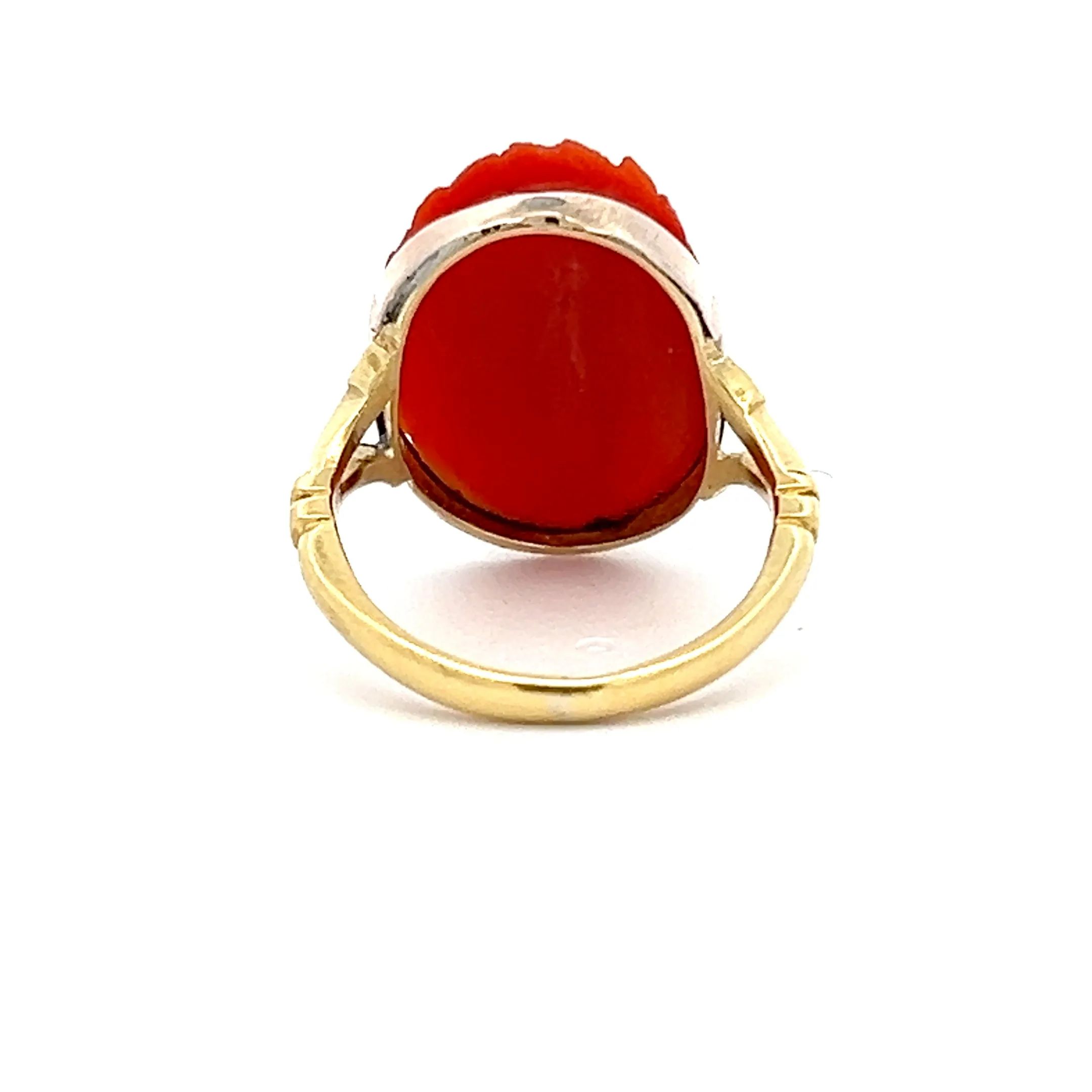 Estate 18K Yellow Gold & Gold Filled Victorian Coral Cameo Ring