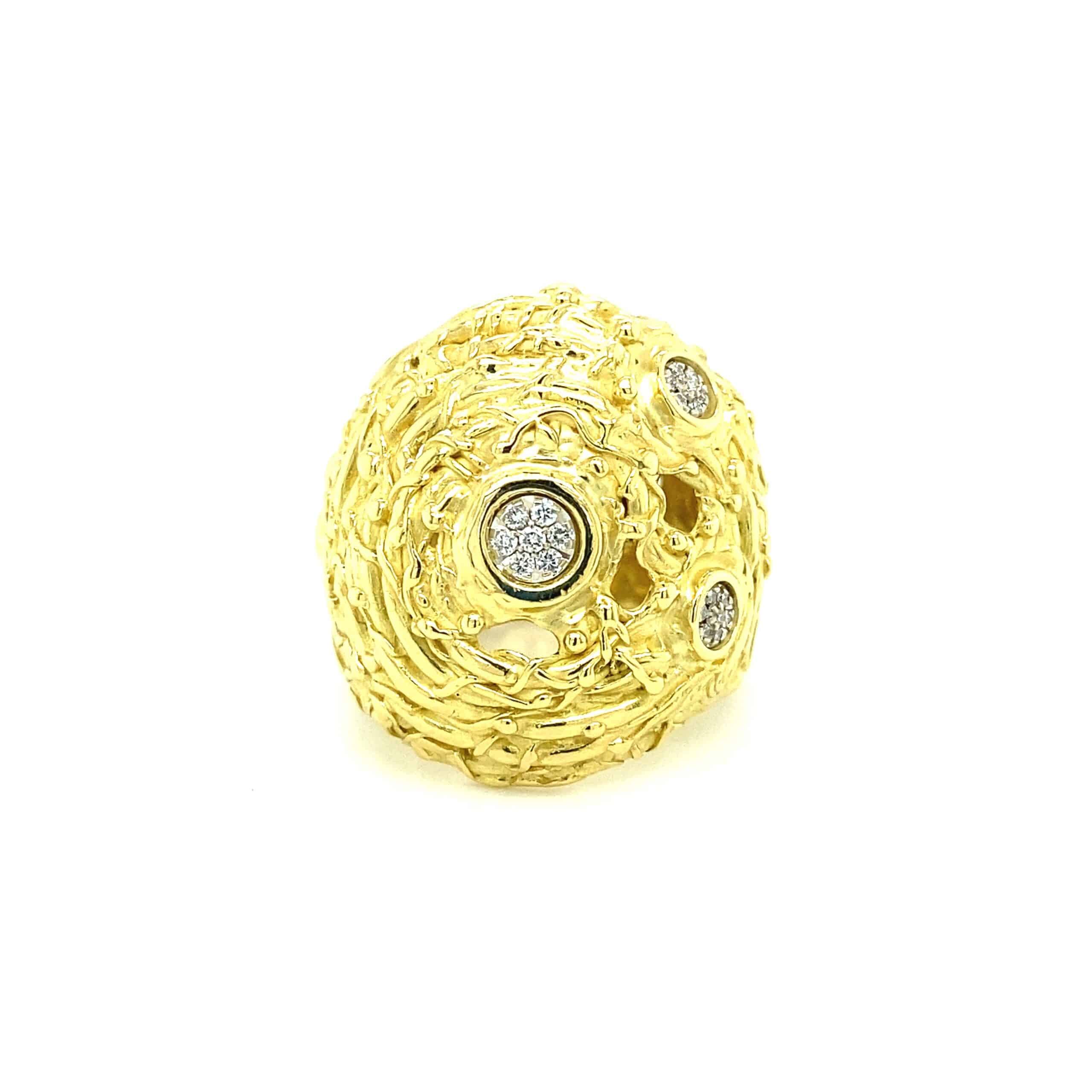 Estate Diamond Bird’s Nest Style Domed Ring in 18k Yellow and White Gold