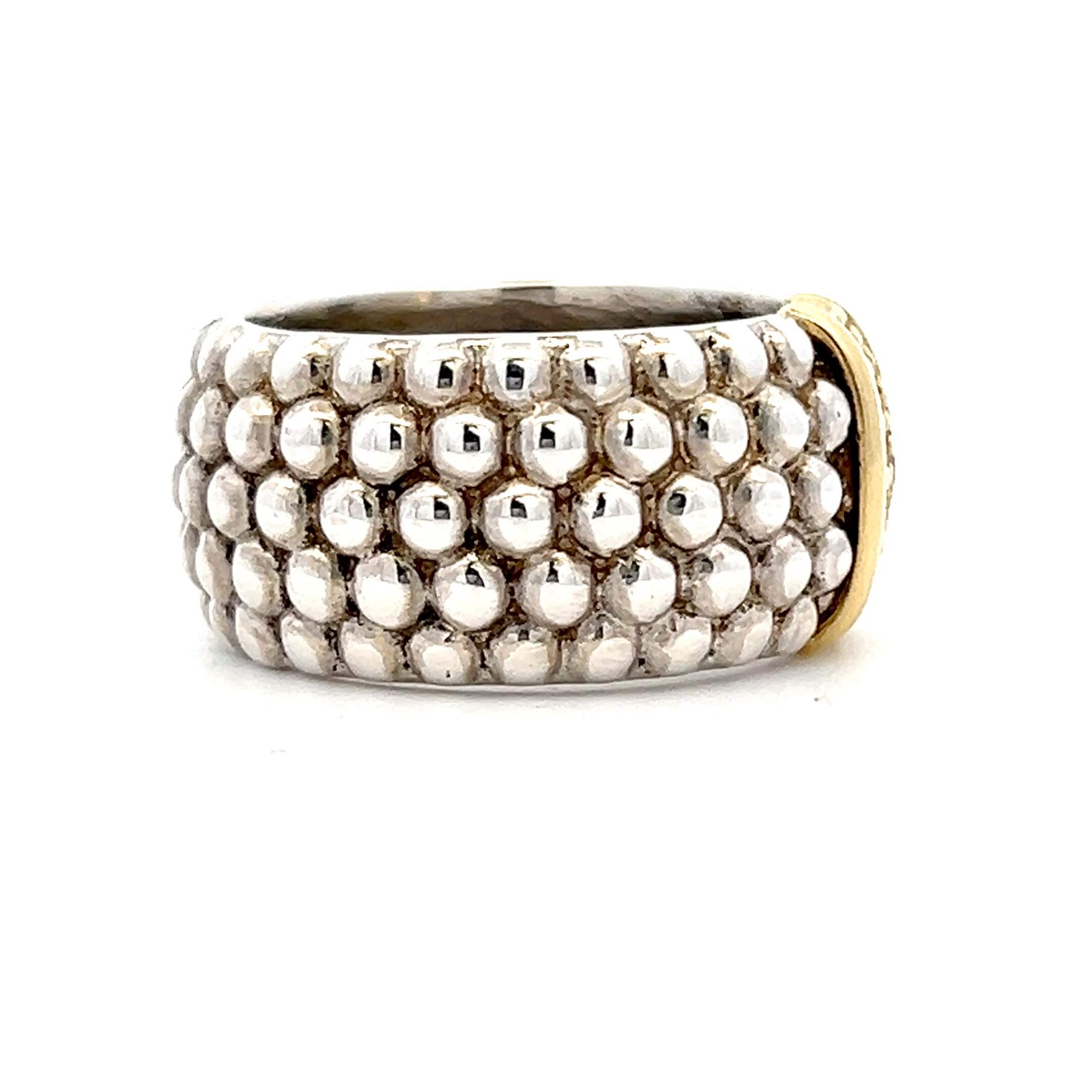 Estate Sterling Silver & 18K Gold Diamond Lagos Caviar Ring