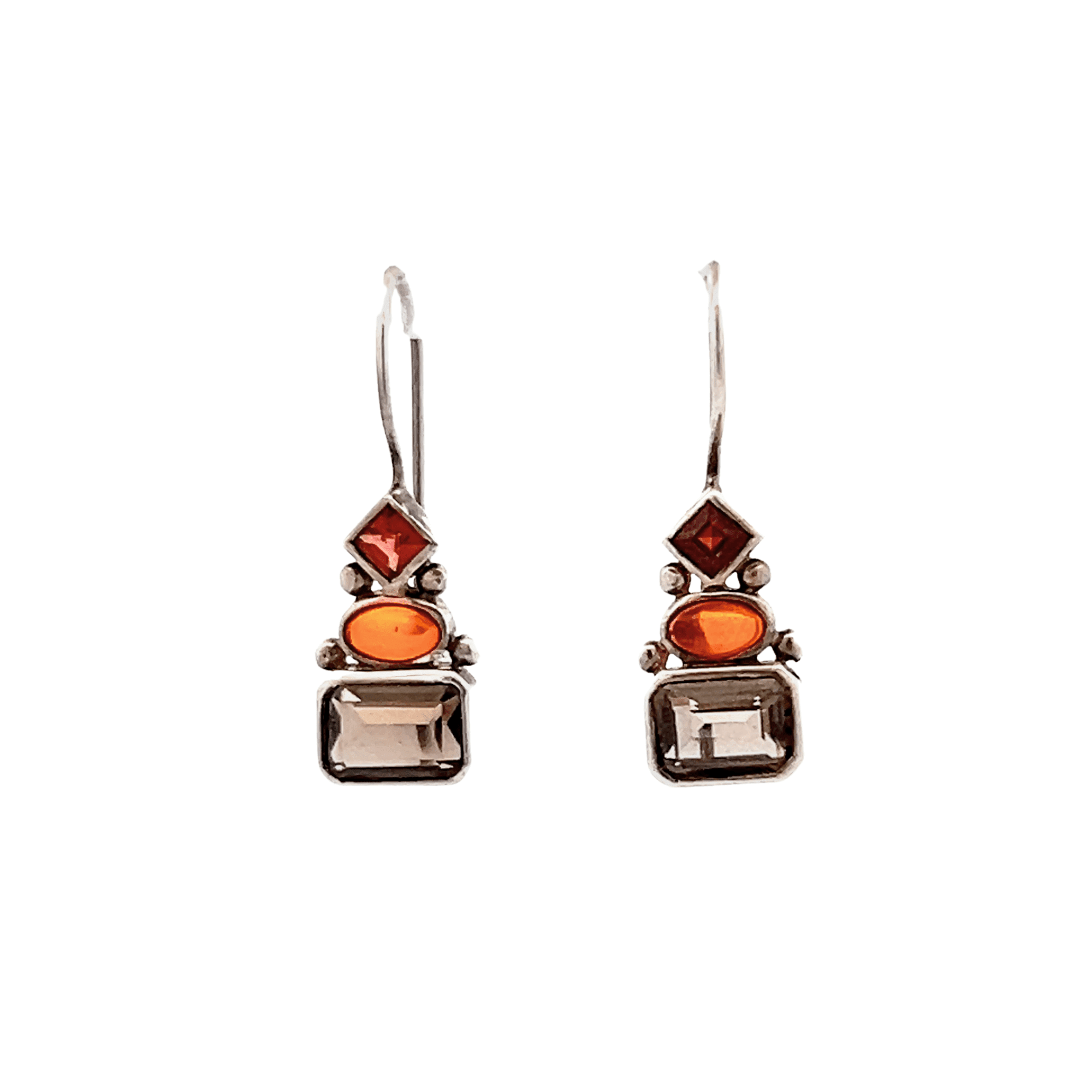 Estate Sterling Silver Amber, Smoky Quartz & Garnet Drop Earrings