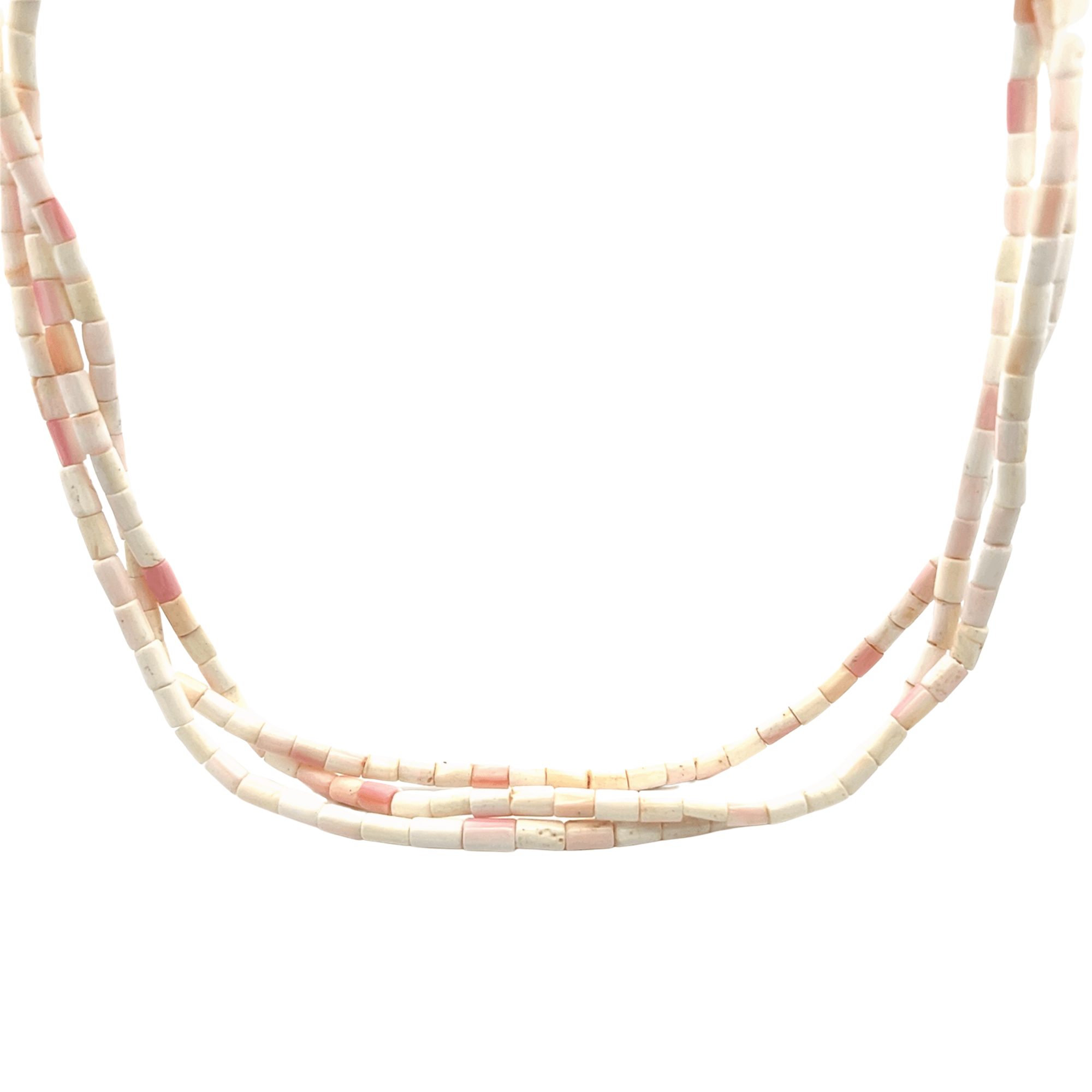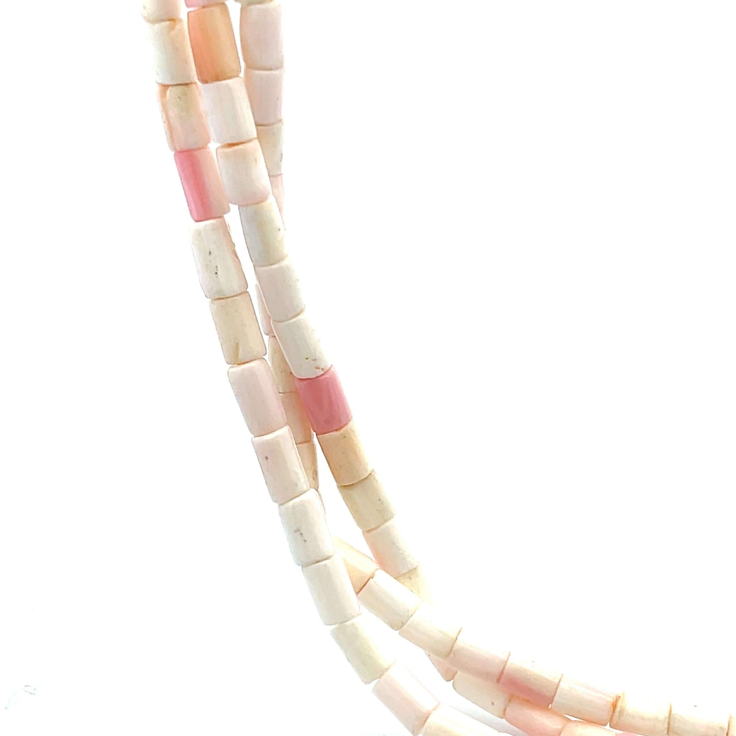 STERLING SILVER HOOK CLASP AND BEADS CORAL TUBE BEADS 23″ LONG MULTI-STRAND 63G