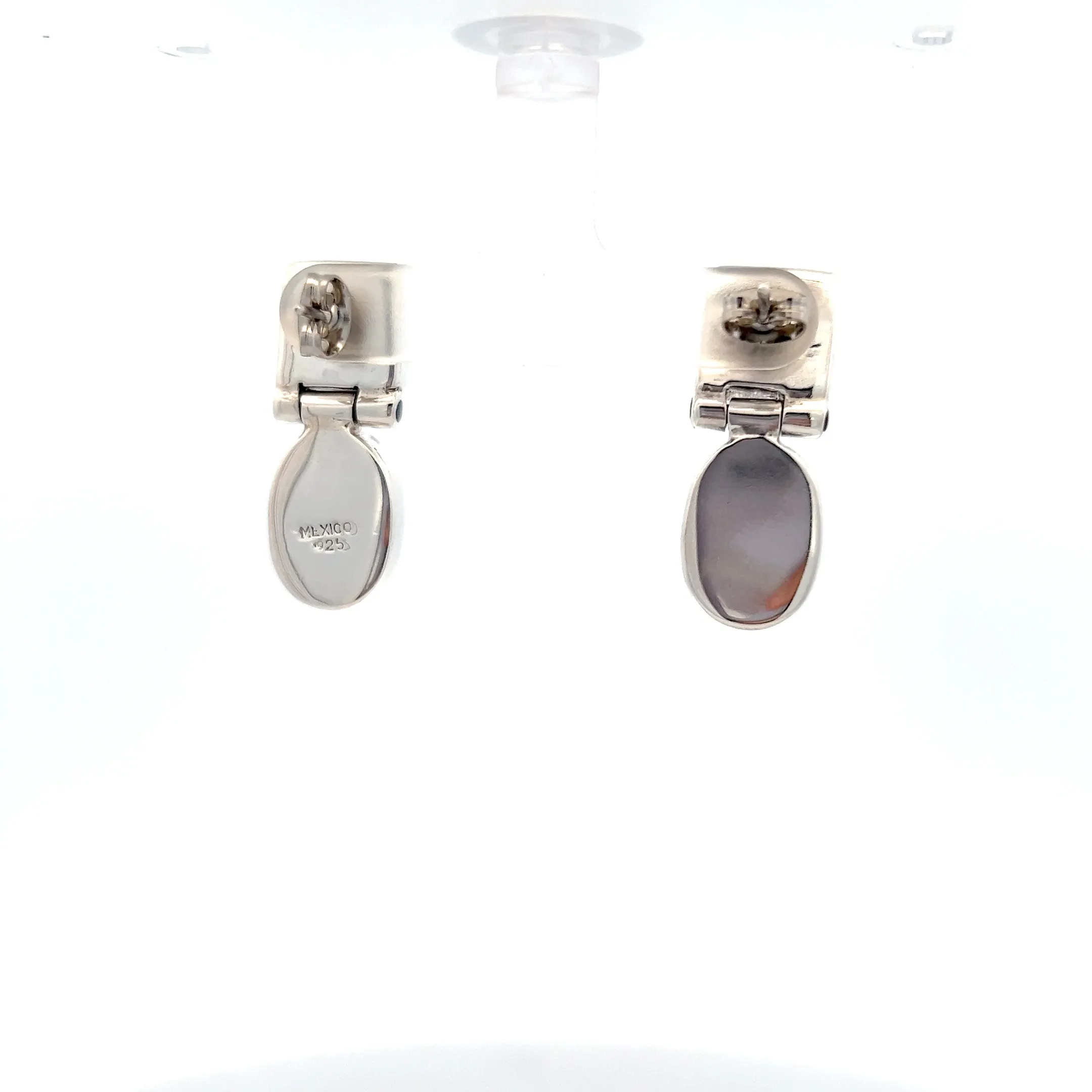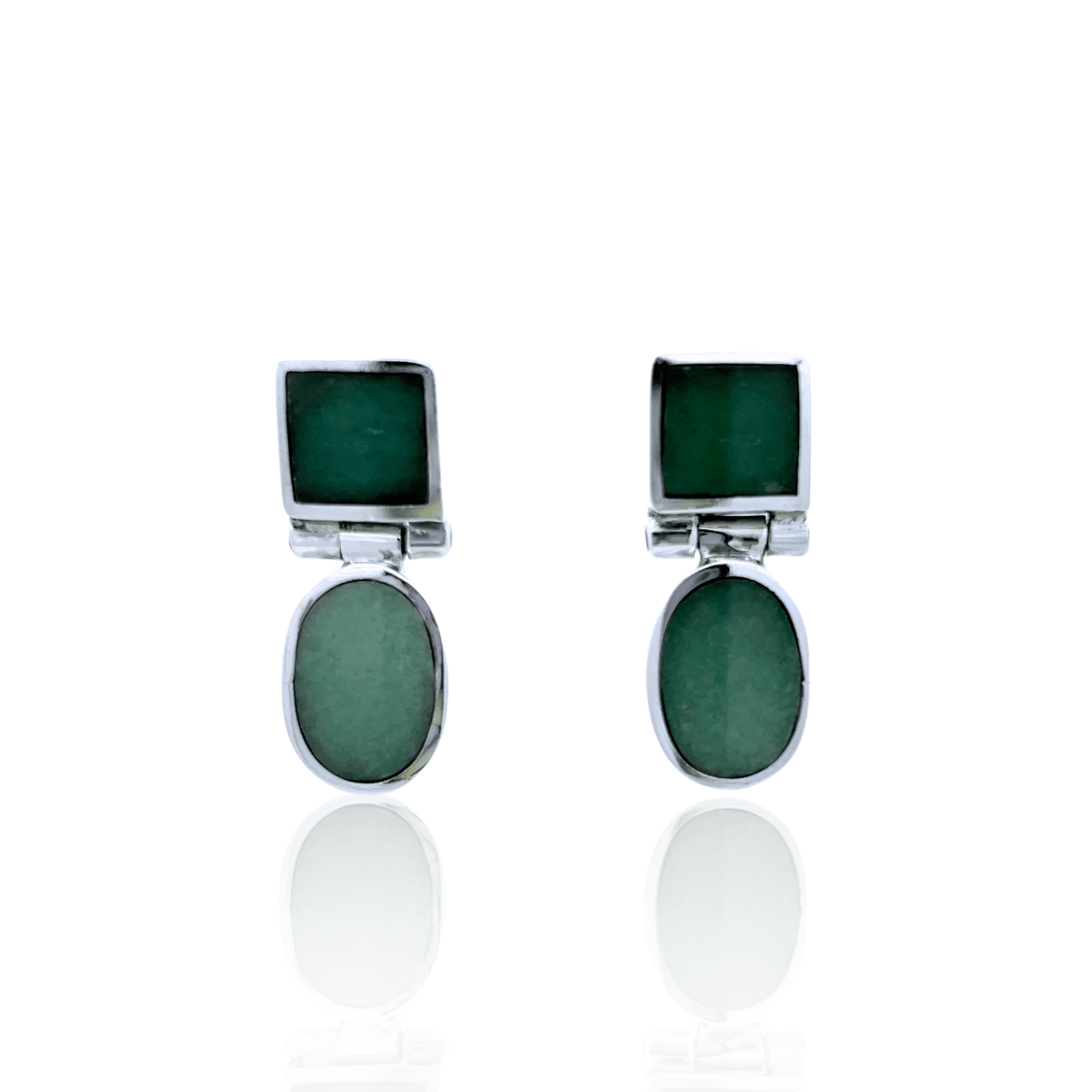 Estate Sterling Silver Dyed Green Chalcedony Inlay Drop Earrings
