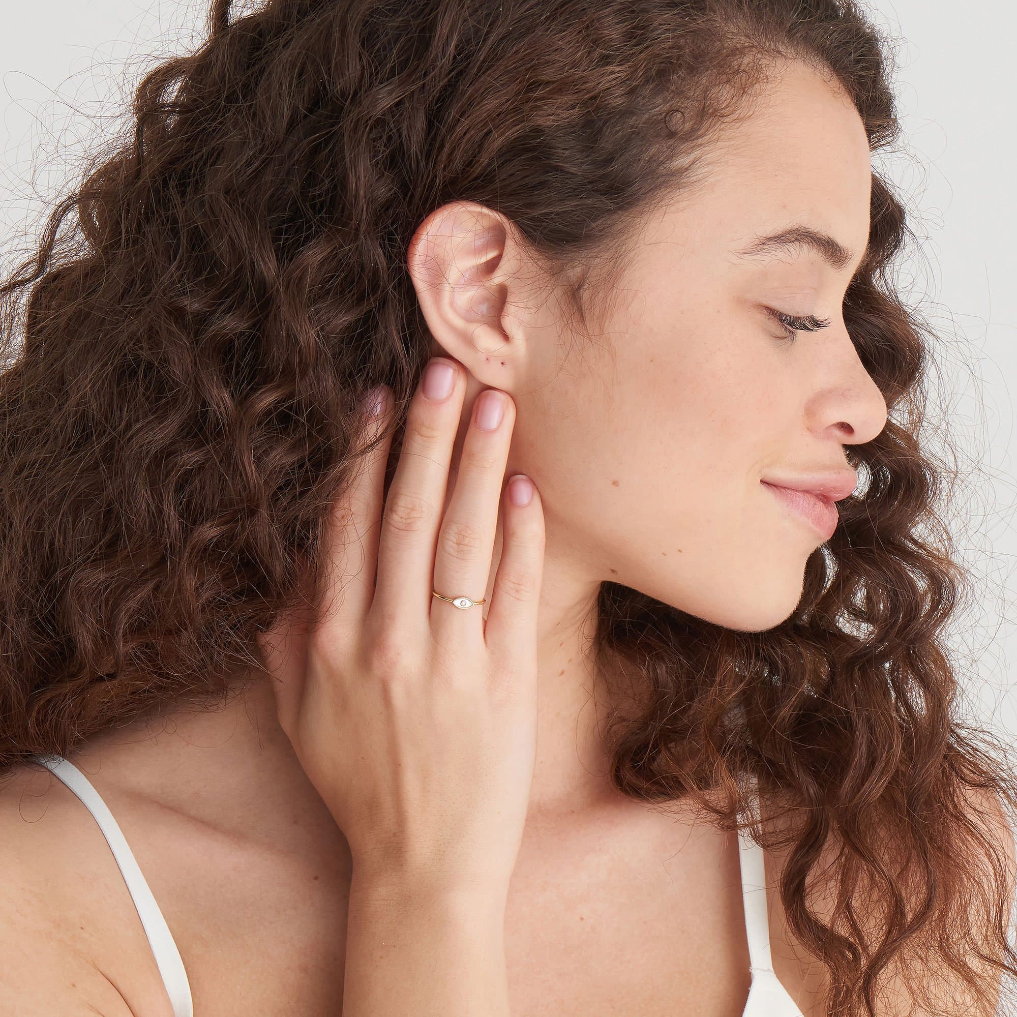 Enchant your wardrobe with the Evil Eye Adjustable Ring from Ania Haie’s Wild Soul collection. Featuring a shimmering mother of pearl eye charm accented by a petite and sparkling cubic zirconia stone, you may just find yourself feeling beguiled by its appeal. Easy to stack with your other favorite rings or wear alone for minimalist sophistication.