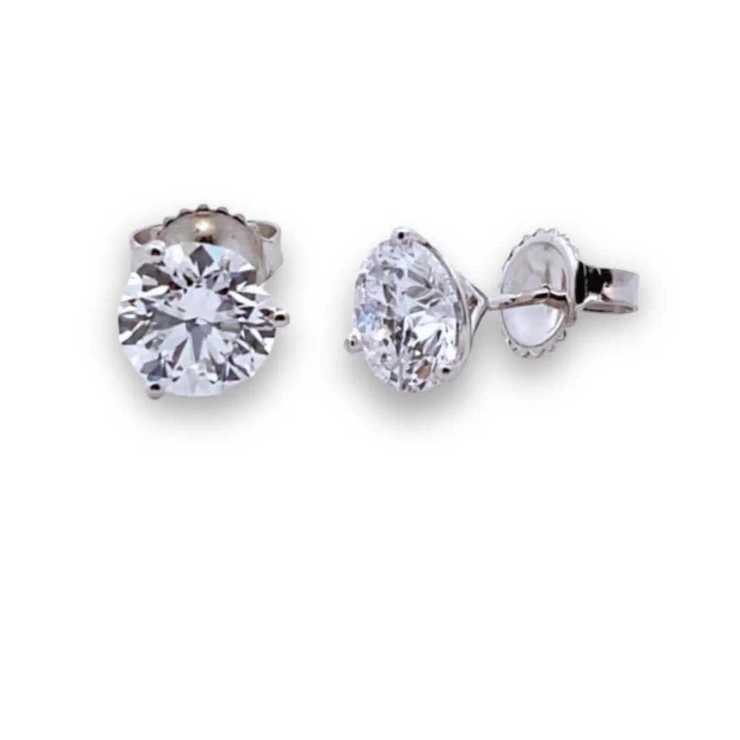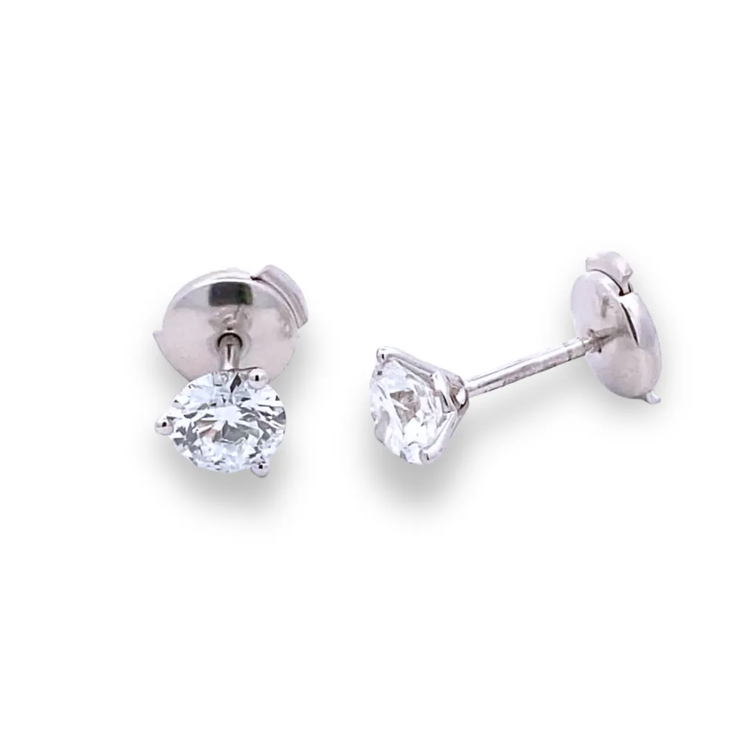The Lab-Grown Three-Prong Diamond Stud Earrings in 14 karat white gold feature 2 lab-grown round brilliant diamonds in three-prong martini settings.