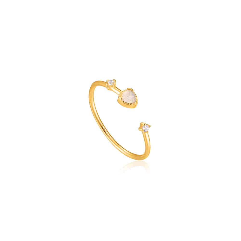 Add a touch of sparkle to your outfit with this adjustable ring. The focal point is a labradorite stone flanked by cubic zirconia stones to catch the light. This is the perfect ring to stack or wear alone.