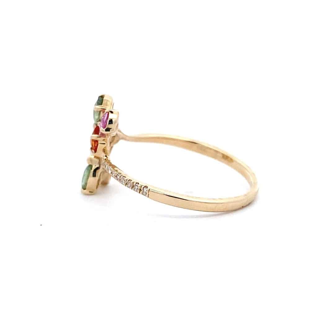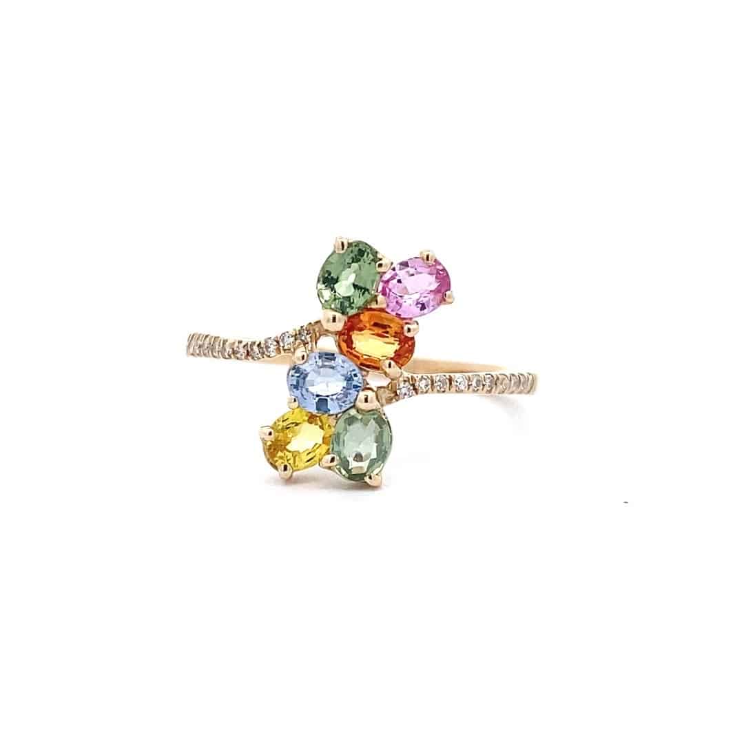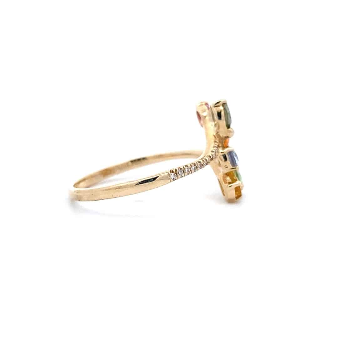 Multi-Color Sapphire and Diamond Bypass Ring in 14k Yellow Gold by Lali