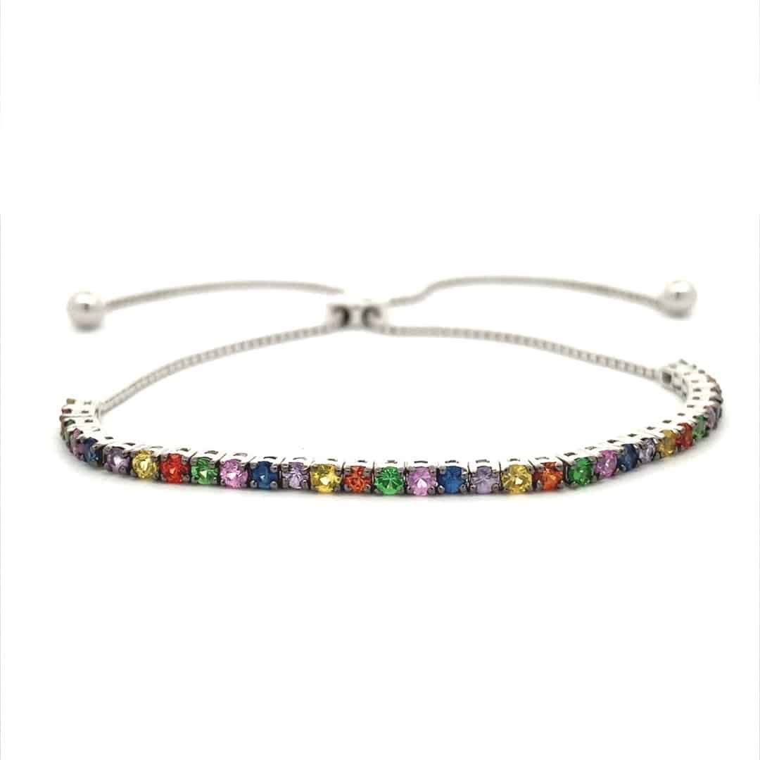 Multi-Color Sapphire Bolo Line Bracelet in 14k White Gold by Effy