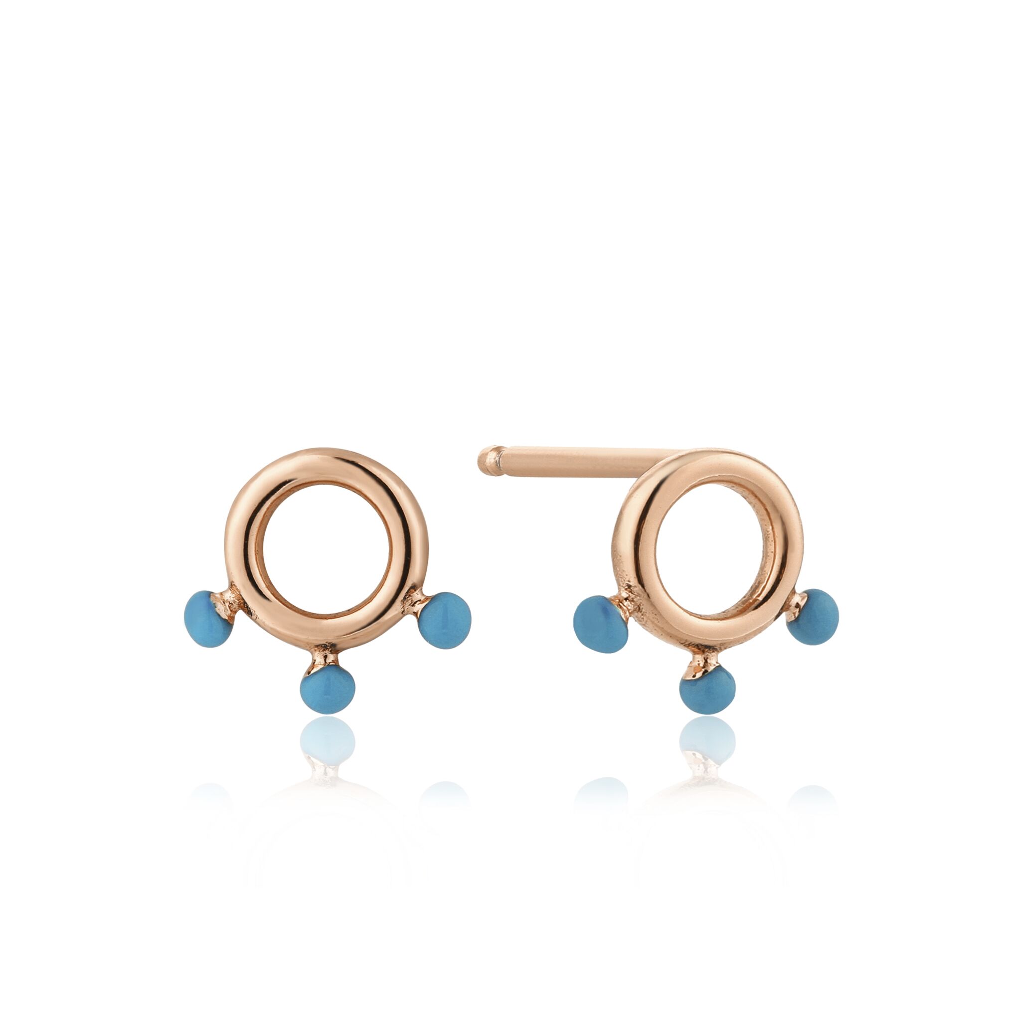 Rose Toned Gold Dotted Circle Stud Earrings by Ania Haie