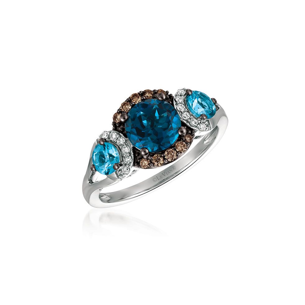Round Deep Sea Blue Topaz™ Ring with Chocolate and Vanilla Diamonds® Le Vian®