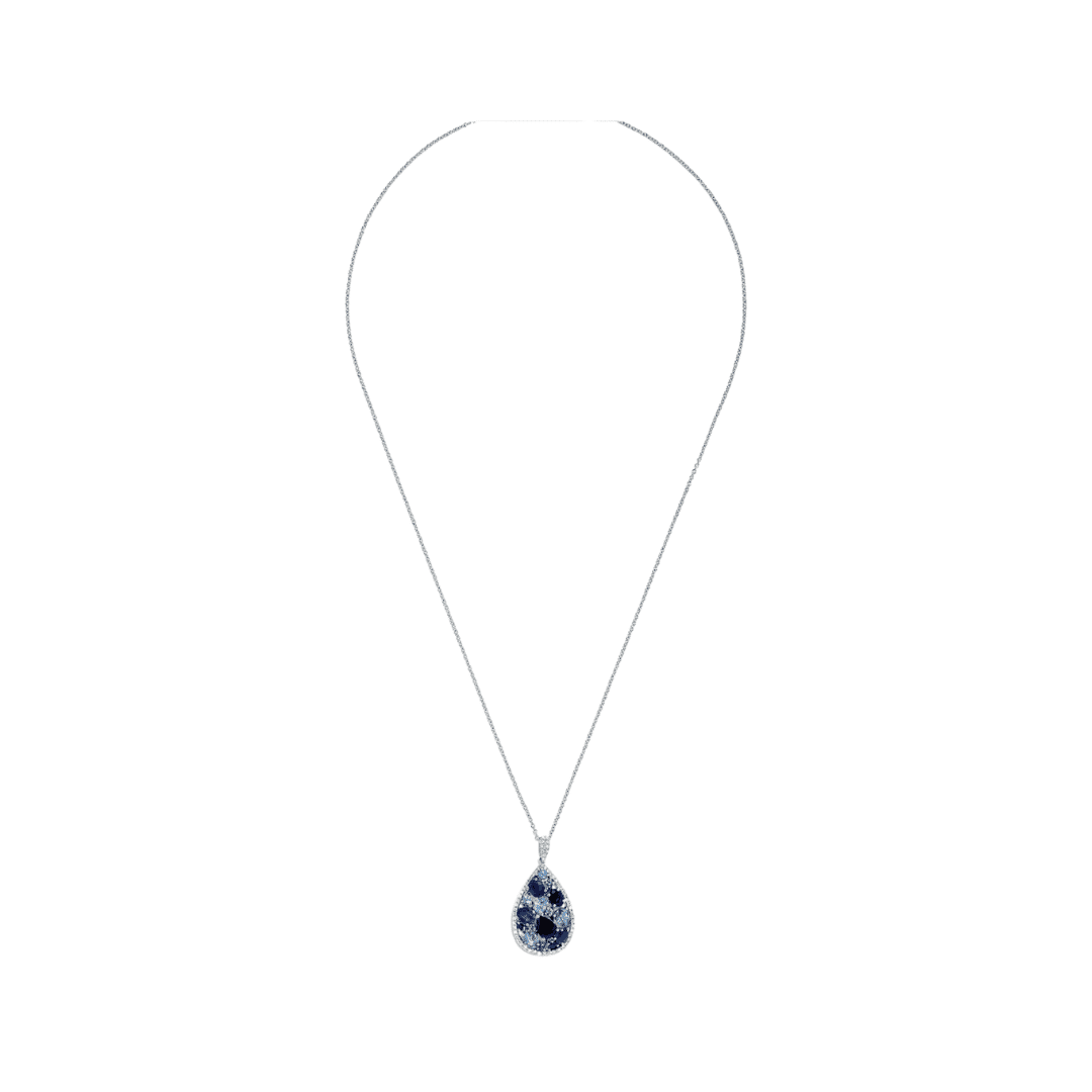 This Sapphire and Diamond Teardrop pendant is from Effy’s Gemma Collection. This pendant is set in 14 karat white gold, and boasts varying hues and shapes of sapphire. It is a stained glass masterpiece in a small package!
