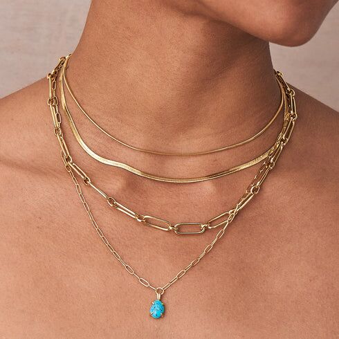 The snake link chain style has been popular since the Victorian era and was considered a status symbol during that time period. The distinctive sleek style accentuates the curves of the neck and collarbone in an eye-catching design that can be worn solo for a classic look or stacked for a modern fashion-forward style.