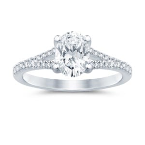 The 14 karat white gold four-prong center setting is designed to hold an oval-shaped diamond weighing approximately 1.00 carats total weight.