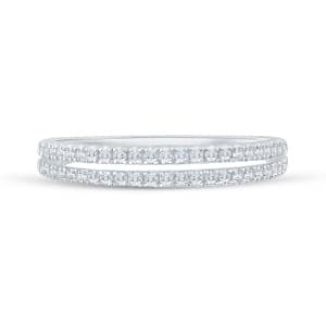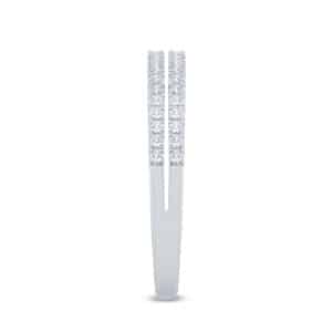 The Split-Shank Diamond Wedding Band in 14 karat gold features 46 round brilliant diamonds weighing 0.25ctw with G-H color and SI1-SI2 clarity.