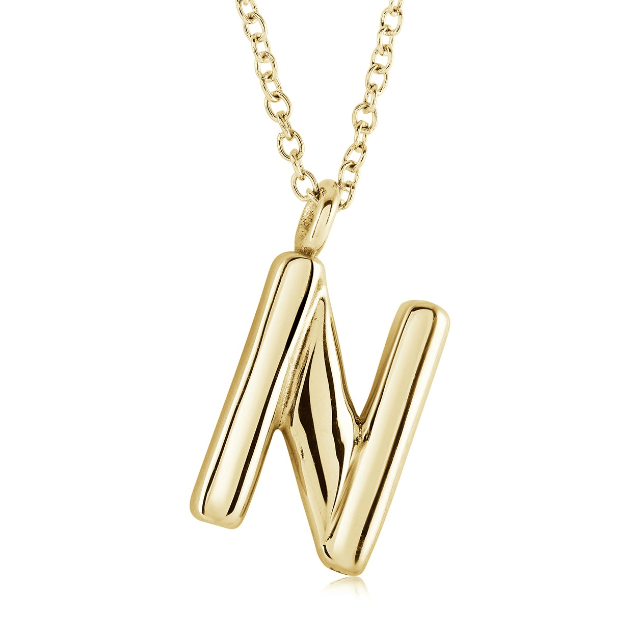 STL/GLD-IP BUBBLE LETTER INITIAL “N” NECKLACE 14+2+2″