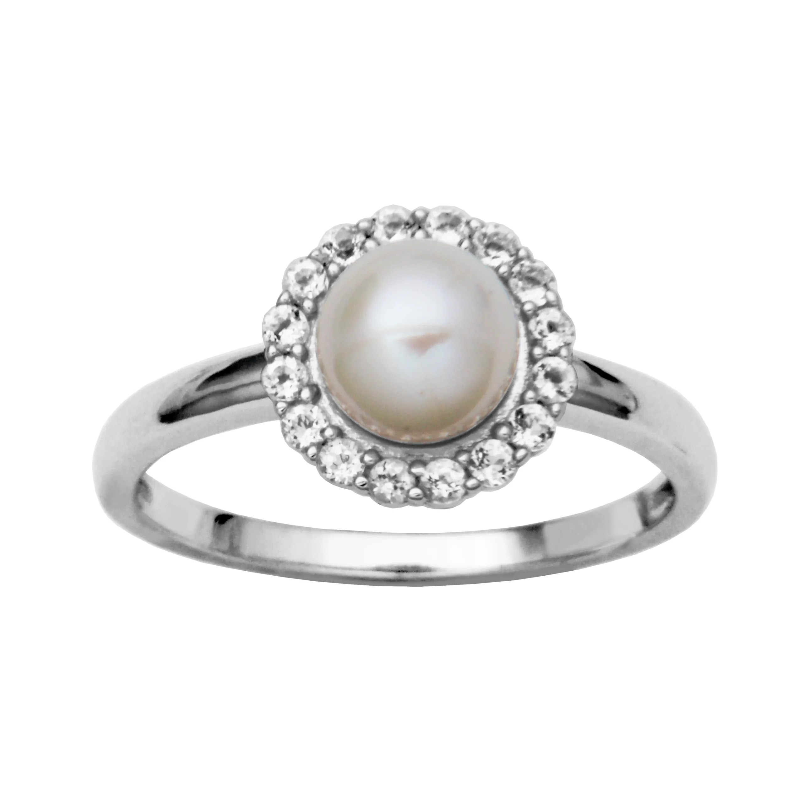 Sterling Silver Pearl and White Topaz Halo Ring by Samuel B.