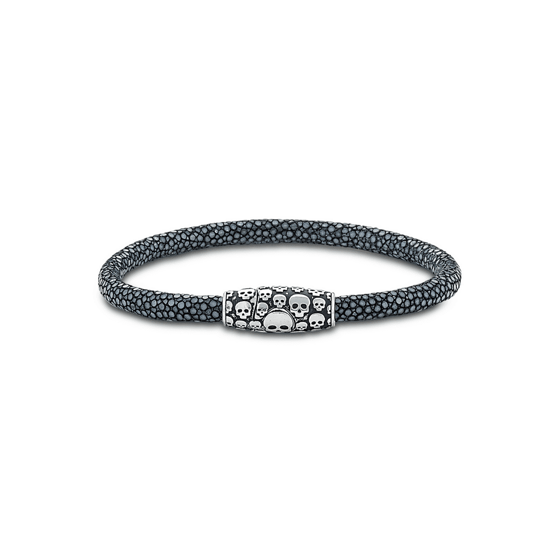 The Sterling Silver Barrel Clasp is magnetic for a secure fit, adorned with skulls for a unique detail.